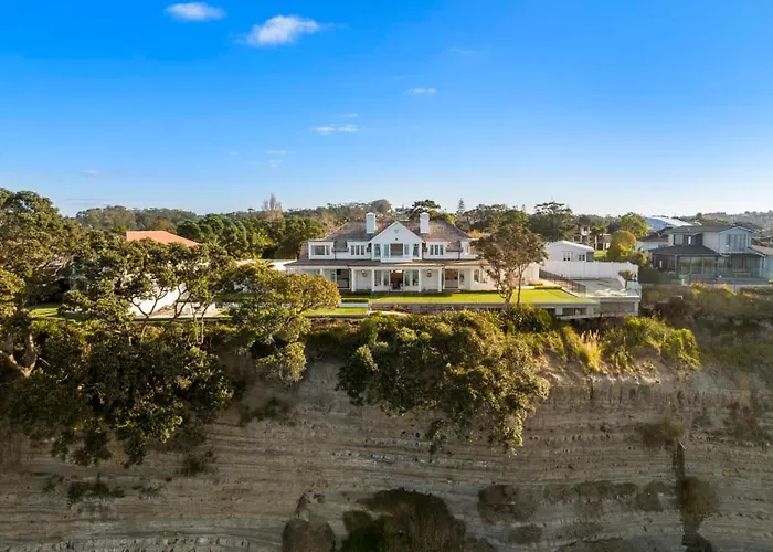 Hampton On View Luxury Clifftop In Campbells Bay Villa ligt in de North Shore wijk, binnen een wandeling van 13 minuten van een sushibar Mairangi Japanese. De accommodatie biedt u 5 slaapkamers, een complete keuken en 5 badkamers.